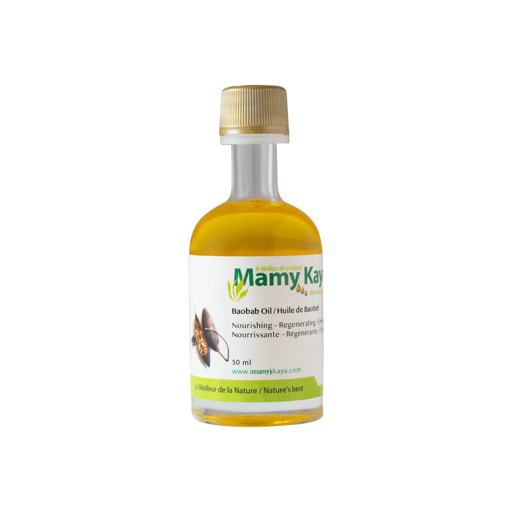 L'huile de baobab est obtenu par pression à froid avec des graines de baobab. Elle peut être utiliser sur la peau, les cheveux et les ongles